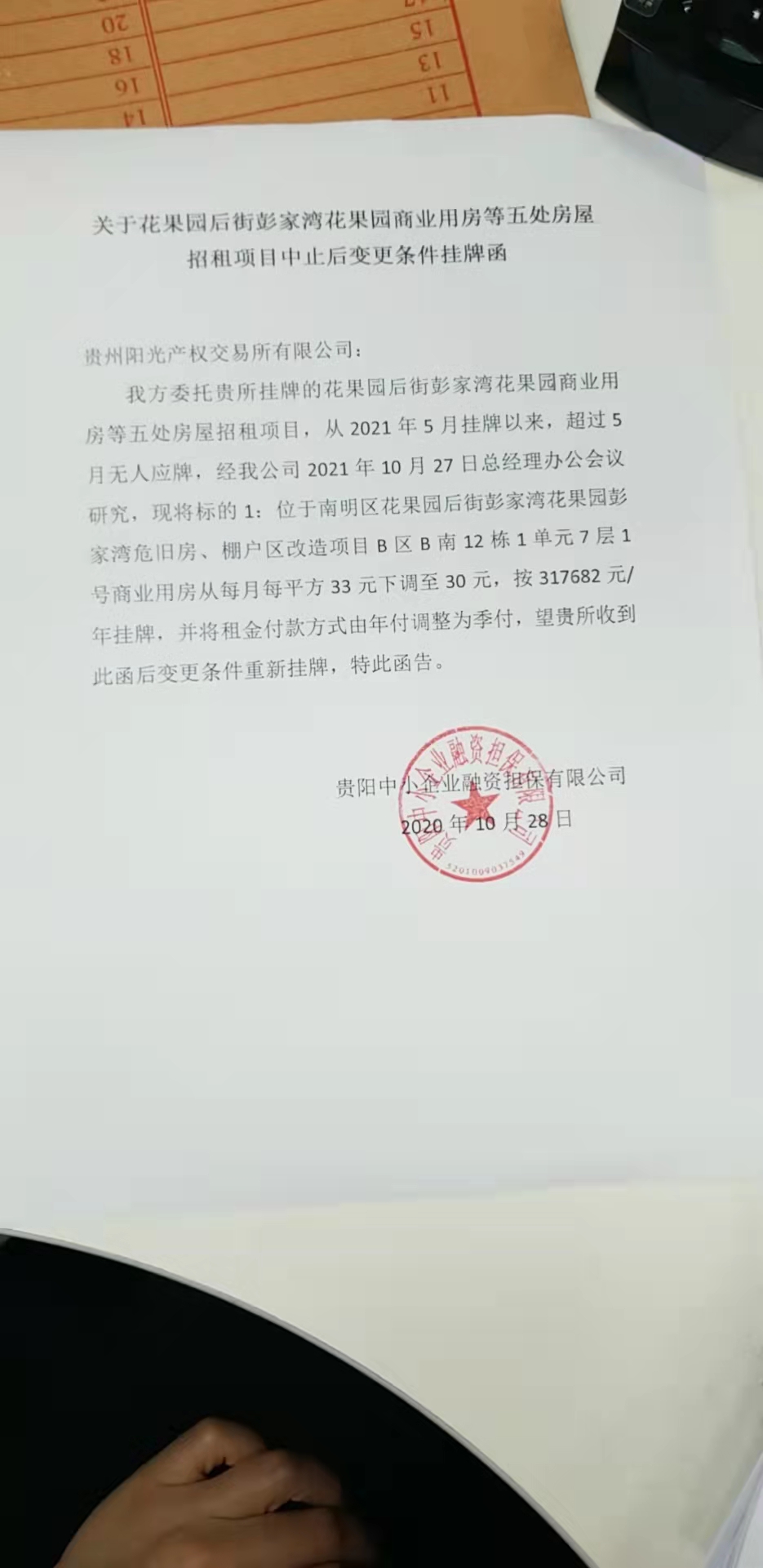 我所受貴陽中小企業(yè)融資擔(dān)保有限公司委托掛牌《花果園后街彭家灣花果園商業(yè)用房等五處房屋招租項(xiàng)目》項(xiàng)目編號GP-C-ZL-2021033(32),因招租方要求需對項(xiàng)目進(jìn)行條件變更,現(xiàn)將項(xiàng)目進(jìn)行中止掛牌。